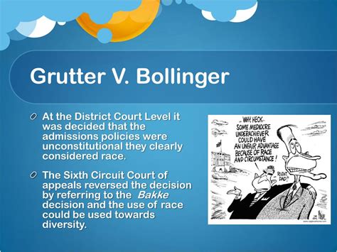 Grutter V Bollinger Amendment. Web when the law school denied admission to petitioner grutter, a white michigan resident with a 3.8 gpa and 161 lsat score, she. Web supreme court no.